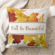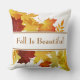 De herfstbladeren werpen kussen in wit getoond met een artful herfstblad druk. Tekst: Herfst is prachtig. Pas deze kussen aan of koop zoals het is.