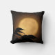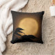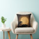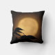 Het is herfst, en een lichtgele volle maan is gestegen achter de zwarte silhouetten van bladeren die in de bries blazen op deze prachtige kunstfoto decoratieve gooiende kussen. De achtergrond wordt verlicht in tonen van oranje, goud en bruin tot creëer een abstract patroon in een Aziatisch motief.