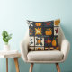 Dit werpkussen heeft een op quilt geïnspireerd patchwork-patroon dat is gerangschikt in een raster van donkere en lichte vierkanten. Elk blokje belicht unieke motieven, van geappliqueerde pompoenen, herfstbladeren en vogeltjes tot geometrische stukken zoals sterretjes, speldenwielen en dambord design. Geschilderd in warme herfst tinten van sinaasappel, rood, geel en bruin tegen contrasterende crème en donkerblauwe achtergronden, het vangt de gezellige charme van handgemaakte quilten. Perfect voor rustieke boerderij inrichting, oogst seizoen ambachten, en primitieve volkskunst liefhebbers die houden van de herfst stijl.