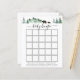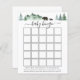 Carte de bingo baby shower avec aquarelle à feuillage persistant arbres, montagnes et maman avec bébé ours. Une façon amusante d'interagir avec les invités de douche pendant que la future maman ouvre ses cadeaux.