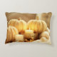 Het avondgloeikussen geeft een gevoel van warmte en comfort met een ontwerp van handgebreide pompoenen en witte gloeiende kaarsen op een rieten dienblad. De kleuren zijn crèmes, bruin en wit.