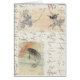 Een verbluffende kaart die geschikt is voor het ontwerpen. Twee Aziatische schilderijen bovenaan een vogel onder de bomen onderaan een van de twee koi's, beide zacht transparant met de achtergrond van Aziatische teksten die erdoorheen laten zien. De kleuren zijn heel zacht en tranquil.