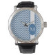 Azure Elegant Chevron Design met monogram Horloge