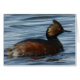 Carte Grebe Gagnée. L'oeil rouge brillant de la graisse des oreilles peut être vu de loin. Ils se nourrissent en plongeant au fond des lacs et des étangs pour chasser les petits poissons, les insectes aquatiques, les escargots et autres.