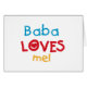 Baba Loves Me T-shirts, cartes, autocollants, sacs de carrosserie, et plus avec coloré rouge, jaune, et bleu texte et conception du coeur. Ces Baba m'aime vêtements et cadeaux feront baba sourire!