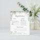 Het licht en luchtledige vibe van dit baby shower zit vol met lush sage greenery, bronze accenten en fijne witte bloemen die eer bewijzen aan de Baby in het thema Bloom, terwijl ze het seksneutraal houden. Groen is een heleboel levendigheid, en het leven maakt het het perfecte thema voor een baby shower. Als je een liefhebber van de natuur bent, dan ga je van dit alom-natuurlijke genderneutrale thema houden! Denk maar eens aan de opvolger. Verander achtergrondkleur of voeg grafiek toe om uw douchethema aan te passen. Neem contact met mij op voor een aangepaste bestelling. Natuurlijk is het niet nodig dat je spelletjes speelt op het baby shower, maar denk er eens over na: je gaat een groep van alle leeftijden hebben, en de meeste gasten hebben elkaar waarschijnlijk nooit ontmoet voor het feest. Het mengen in een paar van deze klassieke baby showers spellen is een perfecte manier om het ijs te breken. Onze dubbelzijdige spelkaarten zijn een elegante en praktische aanvulling op elke douche. Deze professioneel ontworpen kaarten zijn snel aanpasbaar. Voeg uw douanetekst aan dit ontwerp toe door de "Edit this design sjabloon"vakjes op de rechterkant van het punt te gebruiken, of blauwe "pas het"knoop aan om de tekst te schikken, de doopvonten en de kleuren te veranderen en extra informatie of afbeeldingen aan dit ontwerp ook toe te voegen. Klik op "Verder aanpassen" om de volledige bewerkingsopties te openen. Als je coördinerende objecten nodig hebt (dank je kaarten, enz.), kun je contact met me opnemen voor een aangepaste bestelling. ****Voor aangepaste aanvragen heb je mijn hulp nodig. Plaats deze koopwaar niet in je kar. Stuur me in plaats daarvan een e-mail naar lauralise@iyhtvdesigns.com Een link naar je koopwaar wordt naar je gestuurd zodra het object beschikbaar is. U kunt die link gebruiken om uw bestelling te plaatsen. Gelieve maximaal 48 uur toe te staan.
