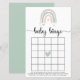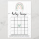 Cute baby bingo douche game met een abstracte boho waterverf van een sage groene, oranje en lavender regenboog met harten en "baby bingo" in een stijlvol script met swashes.