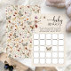 Baby Bingo spel. Op zoek naar een unieke bohemian vibe om indruk te maken op je vrienden en familie? Chic en stijlvol, dit prachtige kleurenpalet van bruin, bruin, roest, terracotta en verbrand sinaasappel is het trending thema voor de baby showers van dit jaar. Rustiek gedroogd gras, bladeren en wilde bloemen zijn verbluffende details om toe te voegen aan uw moderne boho-chic baby shower. Alle briefpapier is professioneel ontworpen door Painted Paperie.