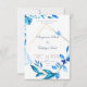 Het is een eenvoudige huwelijksuitnodiging gekleurd met baby blauw voor bloemblaadjes en witte huwelijksuitnodiging om het huwelijksdetail aan te kondigen, zoals de dag en de trouwlocatie en het shows van de namen van pasgetrouwden. versierd met bloemblaadje om het te verfraaien