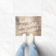Eenvoudige en moderne doormat of vloermat voor het winterseizoen dat zegt: "baby, het is koud buiten" in een gestampte stijl script op een plankhoutachtergrond.