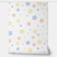 Baby Pink, Yellow, and Blue Stars on White Pattern Behang