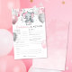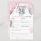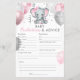 Deze baby voorspelt dat de douchekaart roze en grijze meisjesolifant met ballonnen en confetti bevat. Ideaal voor je gasten om mee te spelen.