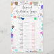 Deze baby shower game card is voorzien van een modern script op de achtergrond van meerdere stippen, perfect voor een baby jongen, een baby girl of een verrassing! Gebruik deze kaart voor je sekse openbaring. De achterkant is met de antwoorden.