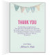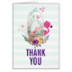 Een baby shower bedankt je kaart met een leuke waterverf illustratie van een ei in een mandje. Ook gedecorbeerd met linten, bogen, bloemen en weinig hart. Een roze flamingo en een wit konijnenkonijn zitten aan beide zijden geduldig te wachten op de grote dag. De binnenkant van de kaart heeft een bundelbanner en een gepersonaliseerd bericht.