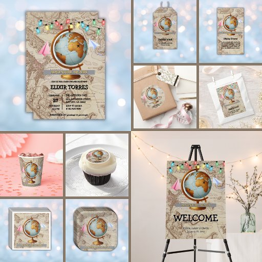 Adventure Awaits World Map Baby Shower CollectionConçu par Elixir Torres