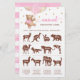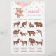 Koop deze bewerkbare kaart en geniet van de hoogwaardige Teddy Bear Animal GBorstspel voor je evenement! Dit is een kaart-sjabloon, u kunt de kaart personaliseren, de tekst wijzigen zoals u wilt. Baby shower Activiteiten! Roos Gold- en roze ballonnen Guessing game. ANTWOORDEN: Deer - 8 maanden, Kangaroo - 40 dagen, Rabbit - 1 maand, Beer - 7 maanden, Camel - 14 maanden, Fox - 51 dagen, Puma - 3 maanden, Dolphin - 1 jaar, Lama - 11 maanden, Goat - 5 maanden, Elephant - 22 maanden, Cat - 2 maanden