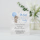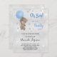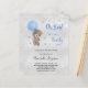Voor een baby shower om een baby te vieren. Een faux zilveren metalen achtergrond. Een teddybeer met een blauwe ballonsterren en faux glitter stof. Pas de naam van de moeder aan en partijdetails aan en voeg deze toe. De naam en de tekst: Oh Boy! en Bearly worden geschreven met een handgeschreven stijlmanuscript.