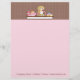 Zakelijk briefhoofd voor bakkerij of bakkerij. Het ontwerp is uitgerust met een meisje dat cupcakes bakt op chocolade en een roze gestippelde achtergrond. Eenvoudig aan te passen en wordt geleverd met uw keuze uit papier en eindigt.