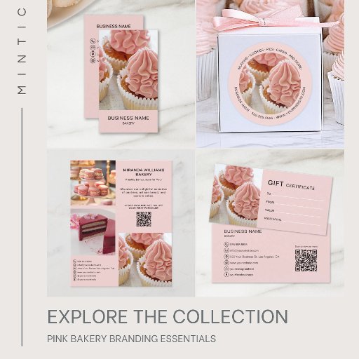 banketbakkerswerkcakewinkelgebak desserts cupcakesflyer sjabloonrozebranding promotie marketingvoeg uw foto toecreëer je eigenscannbare qr codemodern eenvoudig minimalistisch