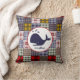Un coussin comportant une illustration d'une baleine au-dessus d'un arrière - plan de plaid de Madras. Personnalisez avec le nom.