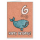Baleine de joyeux anniversaire - 6 années de baleine de bosse mignonne sur une carte de voeux spécifique à l'âge d'anniversaire. Texte intérieur : "Espoir vous avez une baleine d'un moment !"