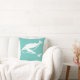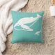 partie de la décoration sur le thème de l'océan mère et bébé baleine blanche sur un coussin bleu turquoise sur un côté et bande turquoise et blanche sur le dos. design par Sandy Closs Océan, plage, bord de mer, marine, nautique, bateau d'eau