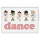 Vijf schattige ballerina's dansen op dit ontwerp, ontdaan van kostuum en schoenen. Roze 'dans' eronder.