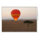 Warmluchtballon bij zonsopgang over de vlakten van de Masai Mara in Kenia. Volledig aanpasbaar wenskaart.