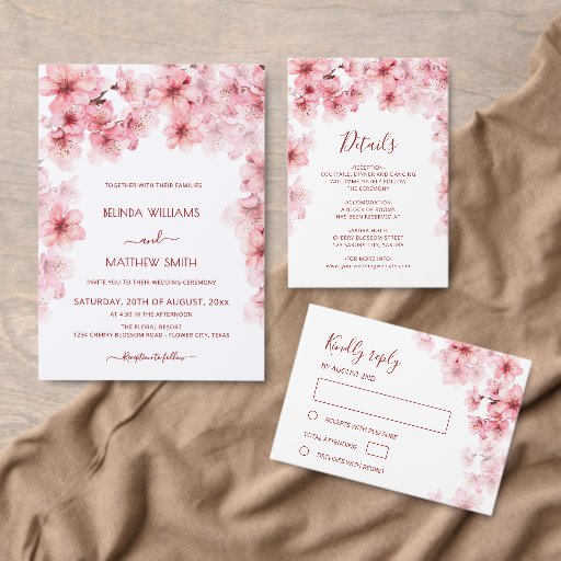 Ballotins Watercolor Cherry Blossom Pink White Wedding