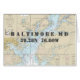 Pour chaque famille de plaisanciers, il y a un port d'attache désigné sur une carte de navigation. Il s'agit de la version nautique de "Home Sweet Home", complétée par l'arrière - plan bleu, bronzé et blanc de l'authentique carte de navigation de la baie de Chesapeake (no 12273). Tout le texte sur cette carte de note est personnalisable, y compris le nom de la ville 'Baltimore,' et la latitude et longitude, qui pointe vers le célèbre Aquarium au Port Intérieur. Modifiez ces champs personnalisés en fonction de votre nom de famille et de vos coordonnées pour votre propre maison ou utilisez tout autre emplacement du comté de Baltimore. Vous avez le choix !