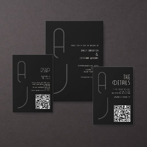 Bandeau De Faire-part Black Matte Simple Minimal Formal Wedding