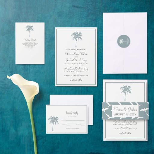 Dusty Blue Tropical Palm Tree Wedding SetConçu par Maria G
