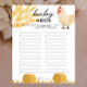 Een deel van het Barnyard Animals collectie, dit Baby ABCs Game is leuk voor alle leeftijden! Kom maar met één woord per brief en de persoon met de meeste winden! U, de gastheer, zult de toegewezen hoeveelheid tijd plaatsen de gasten moeten spelen. Alle tekst is aanpasbaar om de details van uw gelegenheid perfect aan te passen ↣ klik op de knop 'Personaliseren'.