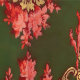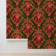 Dit is een digitaal verbeterde print afgeleid van een ca. 1900 barokke rococo stijl van grootschalige scrolling foliate en florale medaillons druipend met foliate swags en rozen. Gedrukt in groen, rood, roze en wit op rode ondergrond.
