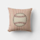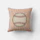 Een honkbal versiert deze rode en crèmegestreepte kussen. Het ontwerp komt uit de oorspronkelijke kunst.