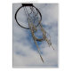 Versleten basketbalhoepel met een bewolkte lucht op de achtergrond. Fotografisch ontwerp. .