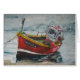 La peinture à l'huile d'un bateau de pêche rouge quand tout le travail est effectué et de tous est tranquille.