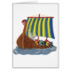 Les voiles bleues et jaunes volent au-dessus de ce navire de Viking. Les boucliers ornent le côté. Le monstre de mer sert à la barre.