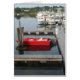 Bateau rouge vif réfléchissant magnifiquement dans l'eau, amarré en toute sécurité pour la soirée. Customisez vos propres cartes de voeux et timbres ! Merci pour vos achats !
