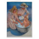 Deux dames victoriennes donnent à un bébé un bain d'été dehors dans une bassine. Forme reproduite la peinture en pastel originale par Sue Halstenberg.