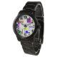 Dit dameshorloge heeft een Bauhaus-ontwerp van lijnen die verticaal en horizontaal lopen om een raster te maken met vierkanten, rechthoeken, driehoeken en cirkels die rond het raster zijn geplaatst. Als je het ontwerp leuk vindt, maar liever verschillende kleuren hebt, stuur me dan een bericht.