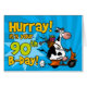 "Hurray! het is je 90e B-dag!" leugenachtige scooterkoe op leeftijdspecifieke verjaardagsdatum - wenskaart