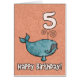 Fijne verjaardagswalvis - 5 jaar oud Cute humpback whale op een leeftijdspecifiek wenskaart. Binnenkant tekst: "Hoop dat je een walvis van een tijd hebt!"