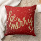 Een Be Merry, Red en Gold Christmas Sierkussen versierd met goudkleurige tekst: Be Merry, op een feestelijke rode achtergrond met goudkleurige sterren. Een licht interieur accent voor de feestdagen!