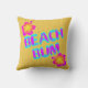 Beach Bum vacances drôle dire en lettres de bois déridé en détresse dans des couleurs vives turquoise et bleu océan avec un contour jaune sable sur un arrière - plan de tapis faux roseau. Idéal pour se détendre autour de la plage, de la piscine ou du jardin. Cliquez sur Customiser pour modifier le dimensionnement de l'image, les couleurs des arrière - plans coussins et plus encore.