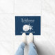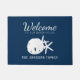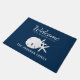 Welkom gasten bij je strandhuis met deze douane-deurmat, met een blauw marineschool en witte zanddollar en zeester. *Als u behoefte hebt aan een ontwerp-tweaks of meer producten met dit ontwerp of andere kleurpaden, kunt u contact met mij opnemen via Zazzle.