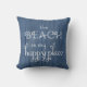 Beach Happy Place Blue Wood Pillow Kussen