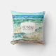 Customisez cet oreiller de Beach House avec votre nom ou nom d'entreprise de location. Idéal pour la location de cabine, de chalet ou de plage côté océan. Il a une belle côte, de la peinture de bord d'eau en bleu, lacets et crèmes. Facile à customiser avec vos propres informations. Conception de Jenn's Emporium.