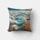 Een glazen bol op de zandkust reflecteert en breekt de oceaangolven erin, terwijl het zachte schuim van het zee het omringt