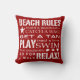 Omkeerbare kussens in twee vette tinten rood aan beide zijden en een leuk lettertype in wit. Maakt een lijst van de regels van het strand voor iedereen om te volgen! Van het bouwen van zandkastelen tot het zoeken naar seizoenshellen, de orde van de dag is aan RELAX! Beschikbaar in verschillende kleuren.